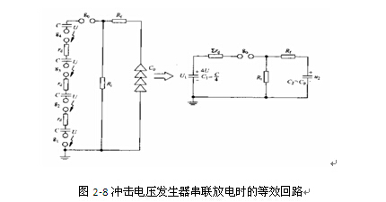 沖擊電壓發(fā)生器要滿足兩個要求:首先要能輸出幾十萬伏到幾百萬伏的電壓,同時這電壓要具有一定波形。沖擊電壓發(fā)生器它是用下列馬克斯回路來達到這些目的的,如圖2-7: